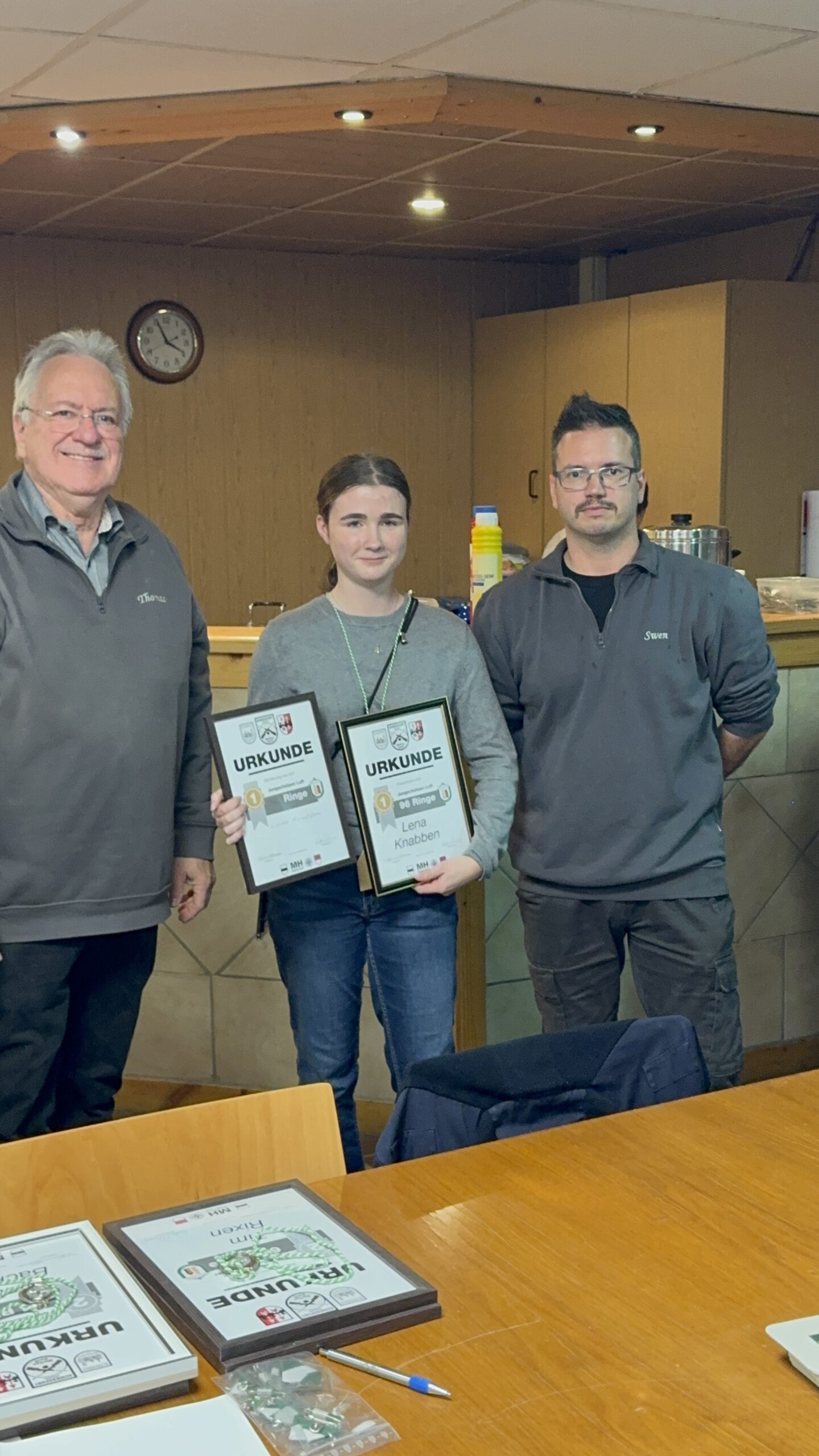 Leider waren Tim Rixen und Louis Abels nicht anwesend, sodass ihnen die Urkunden und Orden im Nachgang überreicht werden mussten.