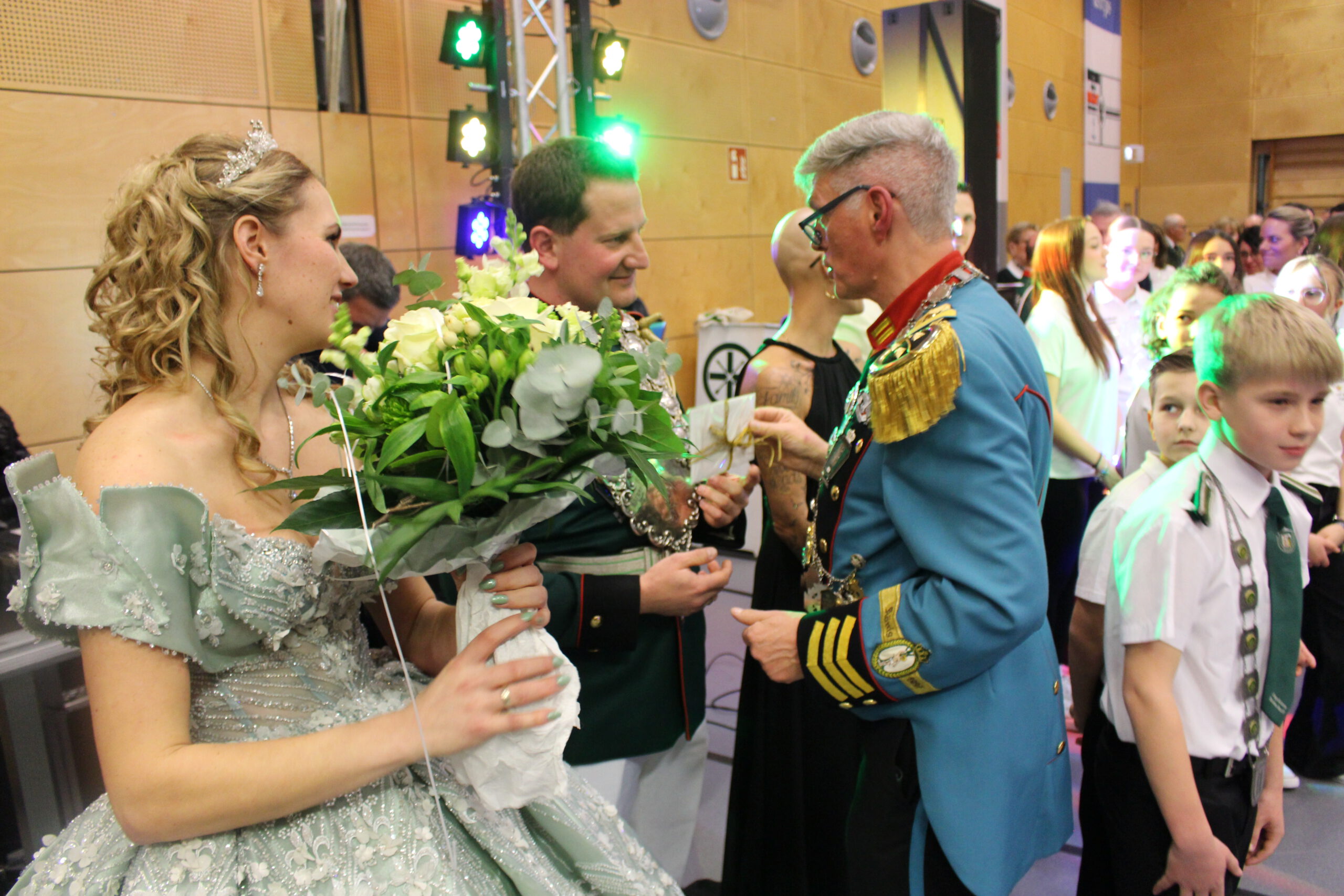 Der Familienball begann um 19:30 Uhr durch den offiziellen Teil mit einer Geschenkübergabe an das amtierende Königspaar Tobias und Miriam Vollenbroich, sowie eine Aufmerksamkeit für unsere Kronzprinzessin. Unser Kronprinz Sascha ging natürlich auch nicht leer aus.