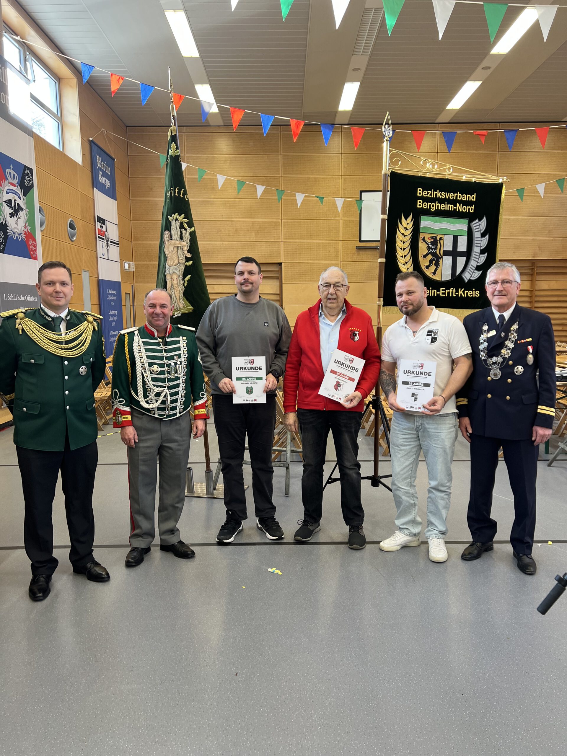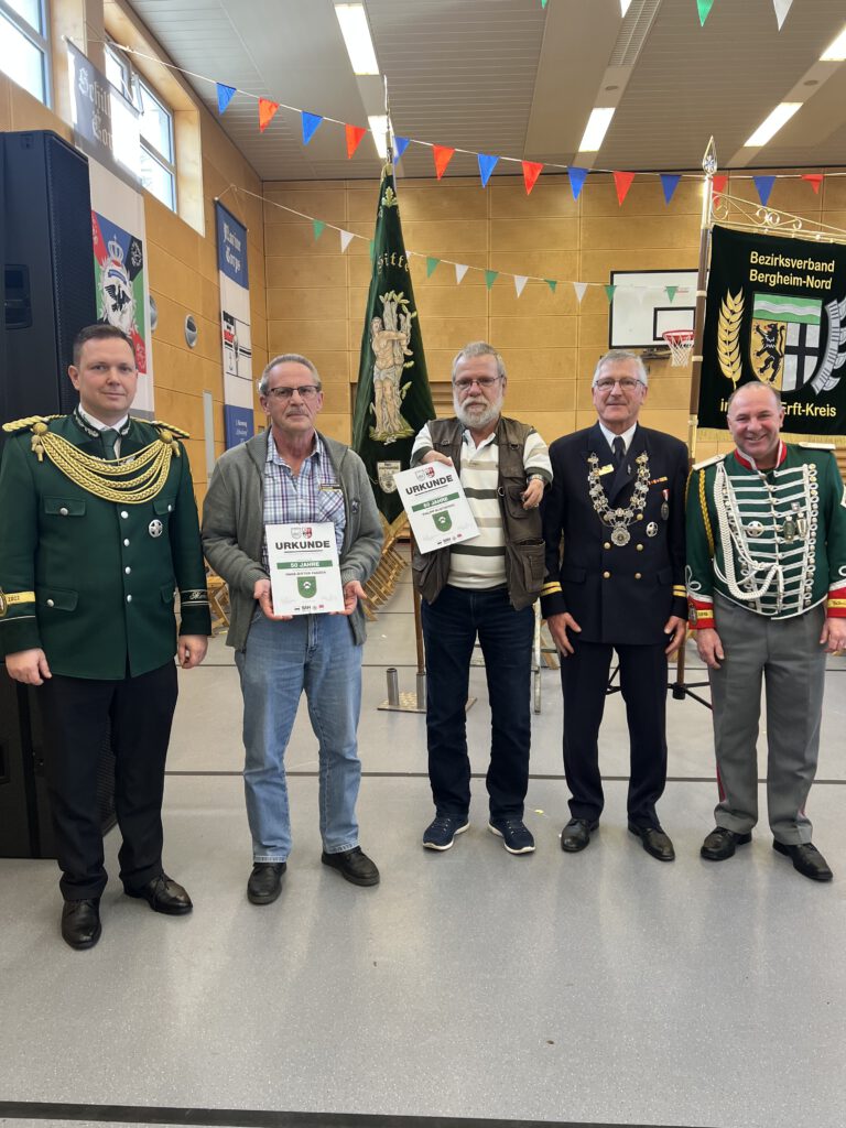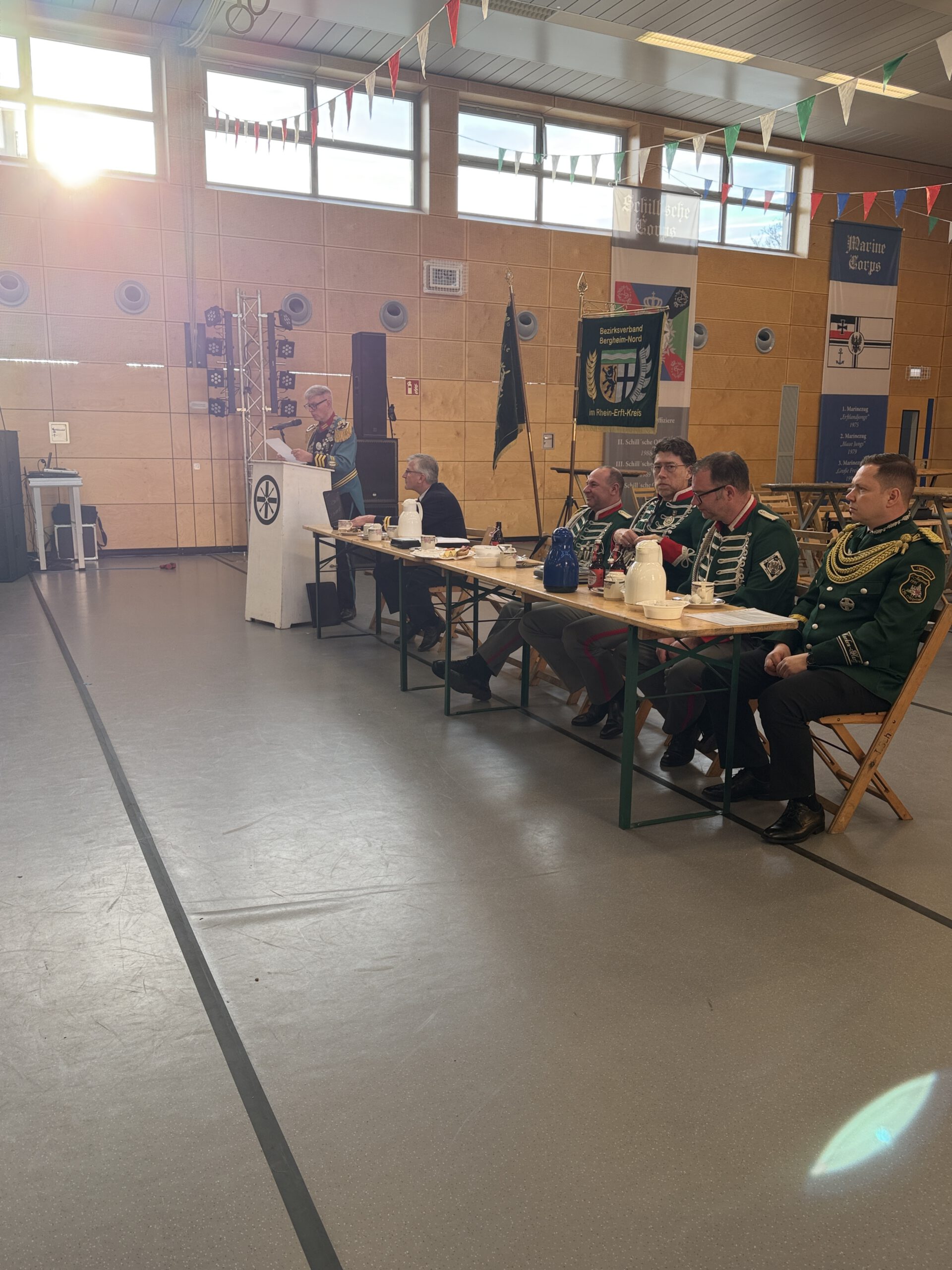 Der Brudermeister Dieter Vleeschhouwers bat die Anwesenden zu Ehren und zum Gedenken der Verstorbenen der Bruderschaft sich von den Plätzen zu erheben. Im Besonderen wurde der im Jahr 2025 verstorbenen Schützenbrüder gedacht. Ebenso wurde unserem kürzlich verstorbenen Mitglied Bert Dangela gedacht.