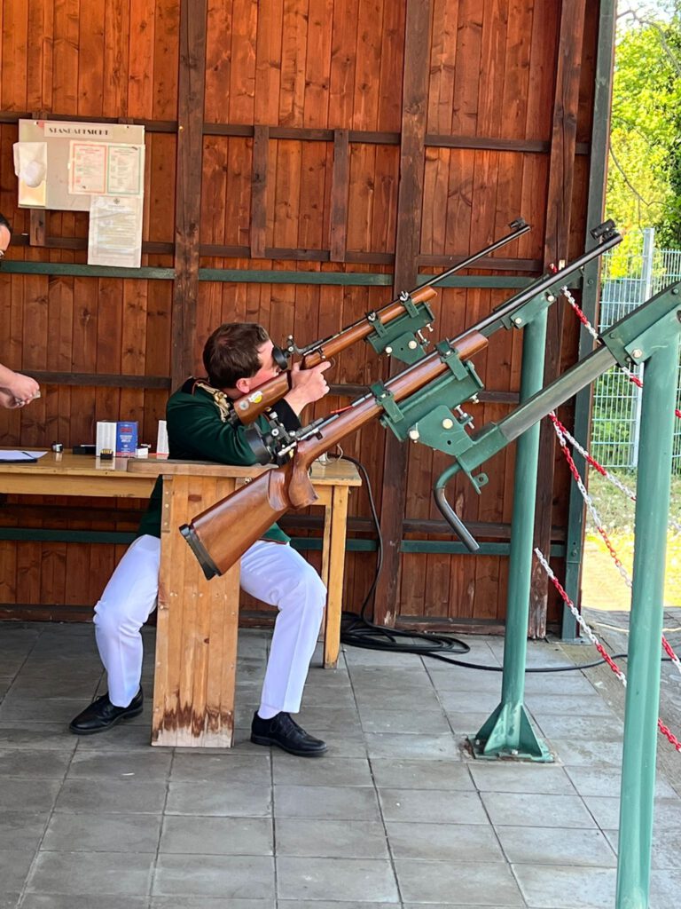 Hier werden die Pokale: Vorstandspokal, Schießmeisterpokal, Jungschützenmeisterpokal und Brudermeisterpokal ausgeschossen. In diesem Jahr konnten wir 2 der 4 Pokale mit nach Morken-Harff bringen. Für den Vorstandspokal standen unser 1. Geschäftsführer Ulrich Heimann und unser 2. Pressewart Tim Schiffer auf dem Schießstand. Mit 97,7 Ringen konnten die beiden den Pokal ergattern.